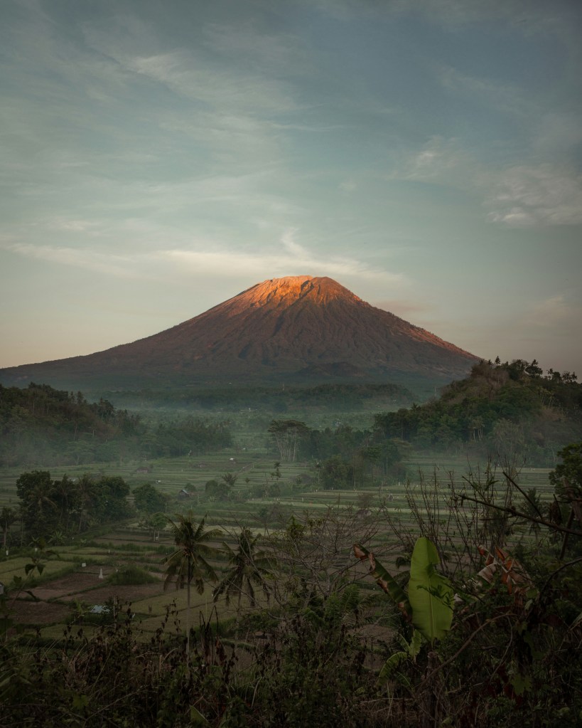 If you were to approach Bali from the North East, you will see the great Mount Agung – Bali’s highest peak – and the smaller, stouter Mount Batur. The two mountains stand large upon the supple, tropical scape of Bali and its smooth, pristine white beaches like lopsided, uneven teats.