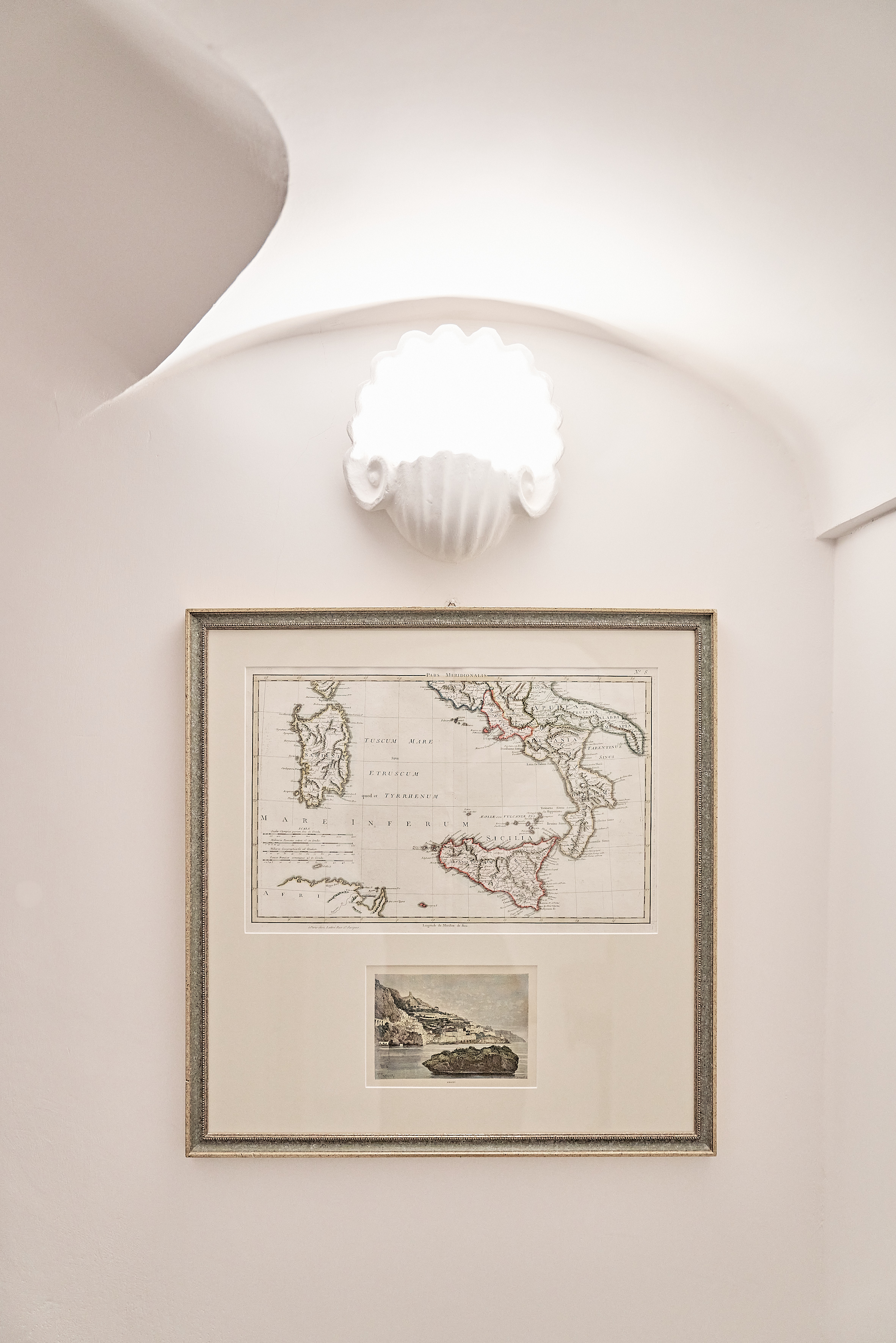 American artist Alex Israel’s Amalfi Dr., 2017, a series of lifelike paintings of the flora that typifies Los Angeles’s Amalfi Drive, runs in parallel to the staircase that leads down from the reception area to the rooms. It is a reminder, doused in the majestic colours of nature, of the universal appeal of Italy’s Amalfi Coast.