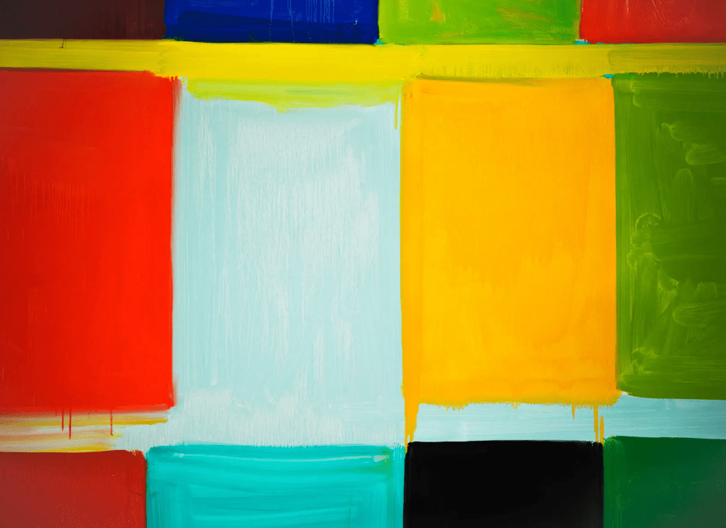 The oil-on-canvas painting invites comparisons to Piet Mondrian’s Tableaus and Composition, because at first glance, there is something akin to the Dutch master’s works in its vividly coloured rectangular sectors separated by lines that either fence and demarcate or bridge and connect, depending on the viewer’s interpretation. Much of my time appraising the art was spent trying to decide between the two.